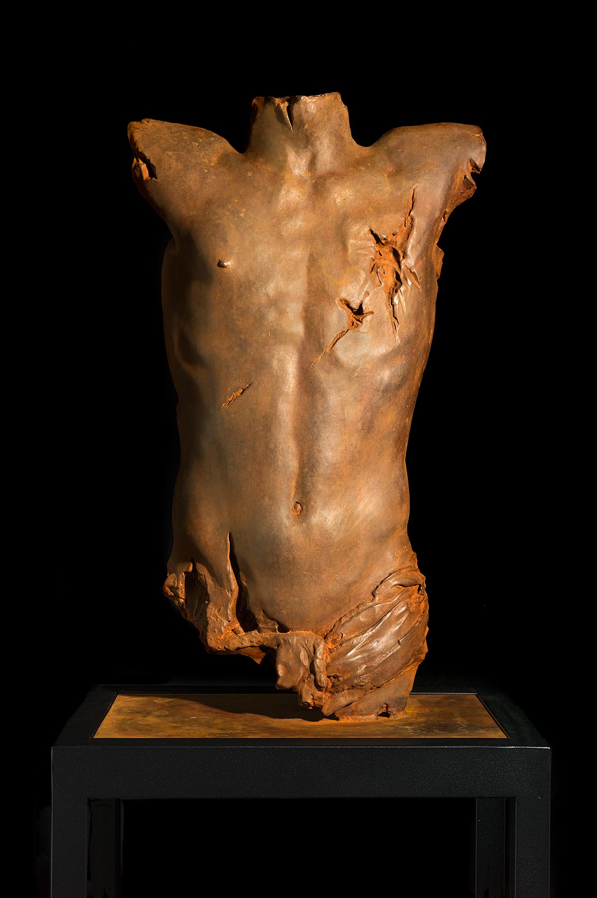 A focus on unfinished bodies, Mauro Corda sometimes chooses to glorify only a selected section of the anatomy. The flesh is vibrant, muscles are prominent, sensitivity is palpable… His “fragments” are traces stamped in marble, bronze or clay.